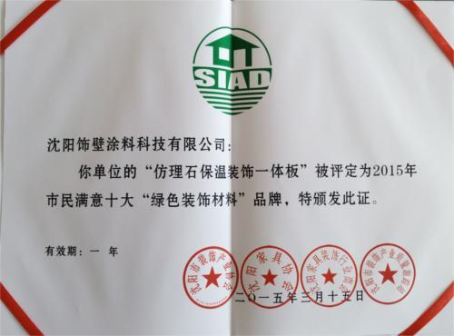 沈陽(yáng)飾璧涂料科技有限公司在遼沈家具裝飾行業(yè)參選的500多家企業(yè)中脫穎而出,得到了行業(yè)和消費(fèi)者的一致認(rèn)可,獲得了“10大綠色裝飾材料品牌”的殊榮。