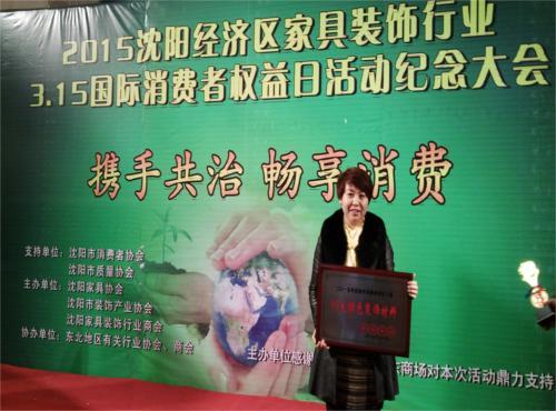 2015年沈陽(yáng)經(jīng)濟(jì)區(qū)家具裝飾行業(yè)“3.15”國(guó)際消費(fèi)者權(quán)益日紀(jì)念大會(huì)在沈陽(yáng)紅星美凱龍隆重舉行!將揭曉誠(chéng)信環(huán)保品牌,誠(chéng)信示范企業(yè),10大綠色裝飾材料品牌等榮譽(yù)企業(yè)名單。