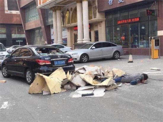 昨日,沈陽大風(fēng),南站一酒店墻皮被風(fēng)吹落砸傷兩位行人,所幸暫無生命為危險。