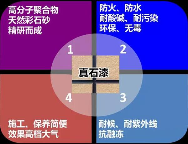 真石漆主要由高分子聚合物、天然彩石砂及相關(guān)助劑制成,干結(jié)固化后堅(jiān)硬如石,看起來像天然真石一樣。巖片真石漆也叫仿花崗石漆、花崗巖涂料,是不含任何溶劑型物質(zhì)的砂壁狀建筑涂料,是傳統(tǒng)天然真石漆的升級(jí)換代品種。