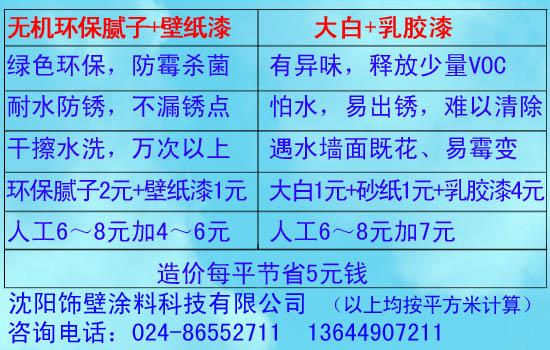 無機環(huán)保膩子粉和大白+乳膠漆性價比對比圖